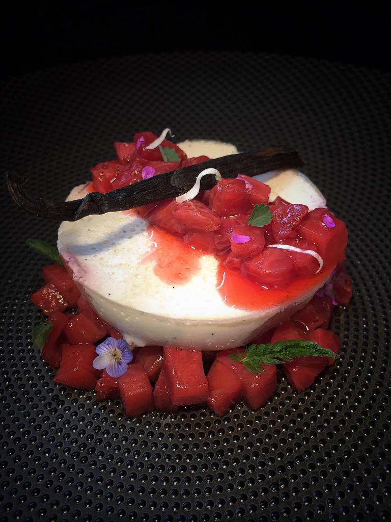 Pour le dressage, dressez vos panna cotta avec le tartare de fraises sur le dessus et versez au dernier moment du jus de fraises frais.